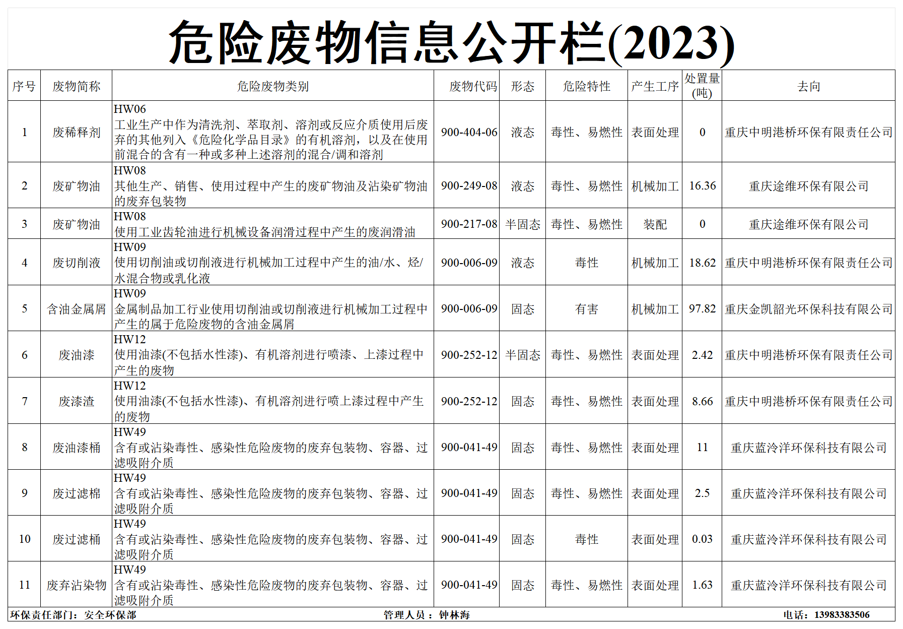2023年度危險(xiǎn)廢物信息公開(kāi)欄